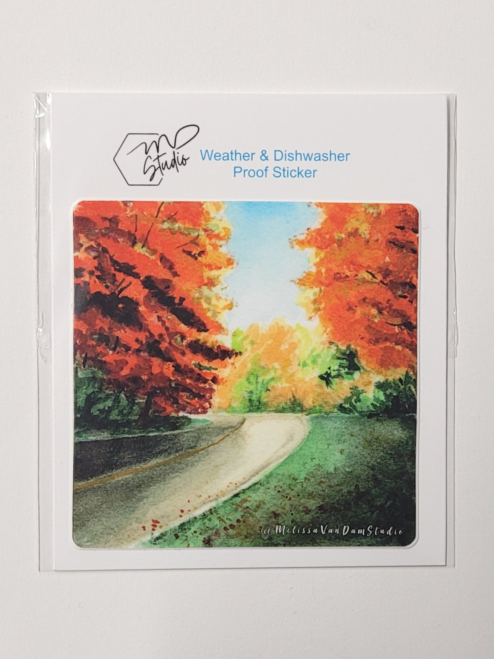 Transform your water bottle into a stylish statement piece with our "Around the Bend" sticker. Featuring a picturesque country road surrounded by vibrant fall red trees, this weather proof sticker adds an elegant touch to your daily routine. Take a scenic journey every time you take a sip.