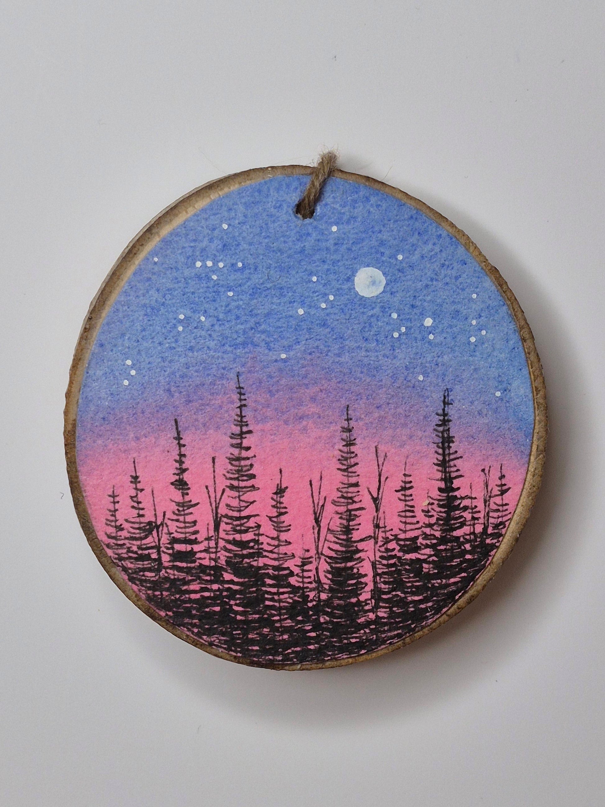 Brighten up your holiday décor with these charmingly hand-painted wood slice ornaments! Create your own unique story in the stars, with an enchanting watercolour sky, moon, sunset and winter designs, sure to light up any winter night. (Or even summer!) Enjoy a beautiful and one-of-a-kind addition to your holiday collection!