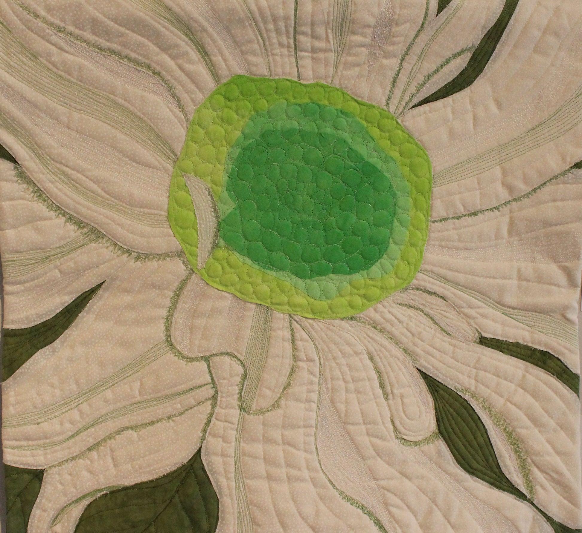 This pillow cover shows a large scale daisy in the style of Georgia O'Keeffe. Pillow form in not included.