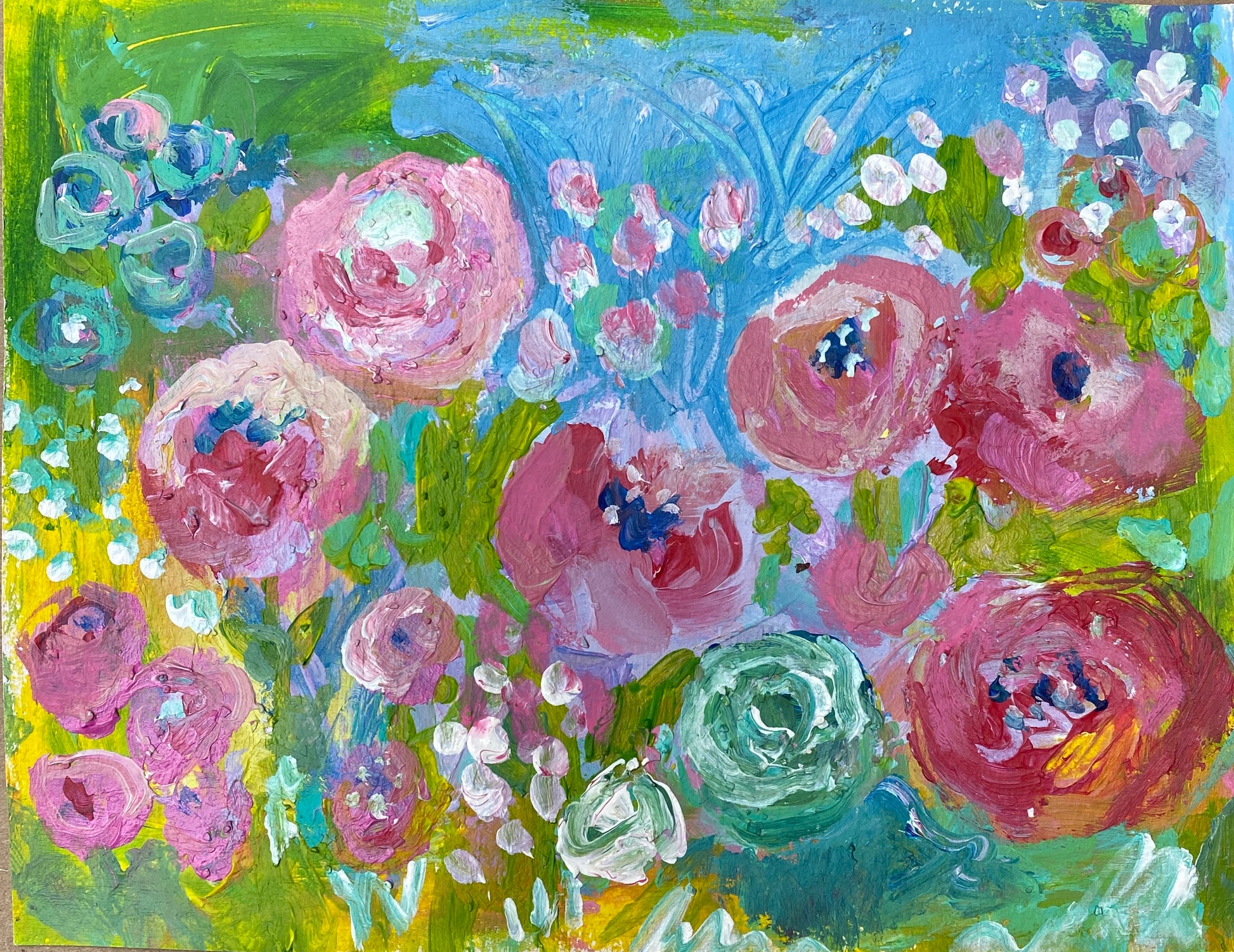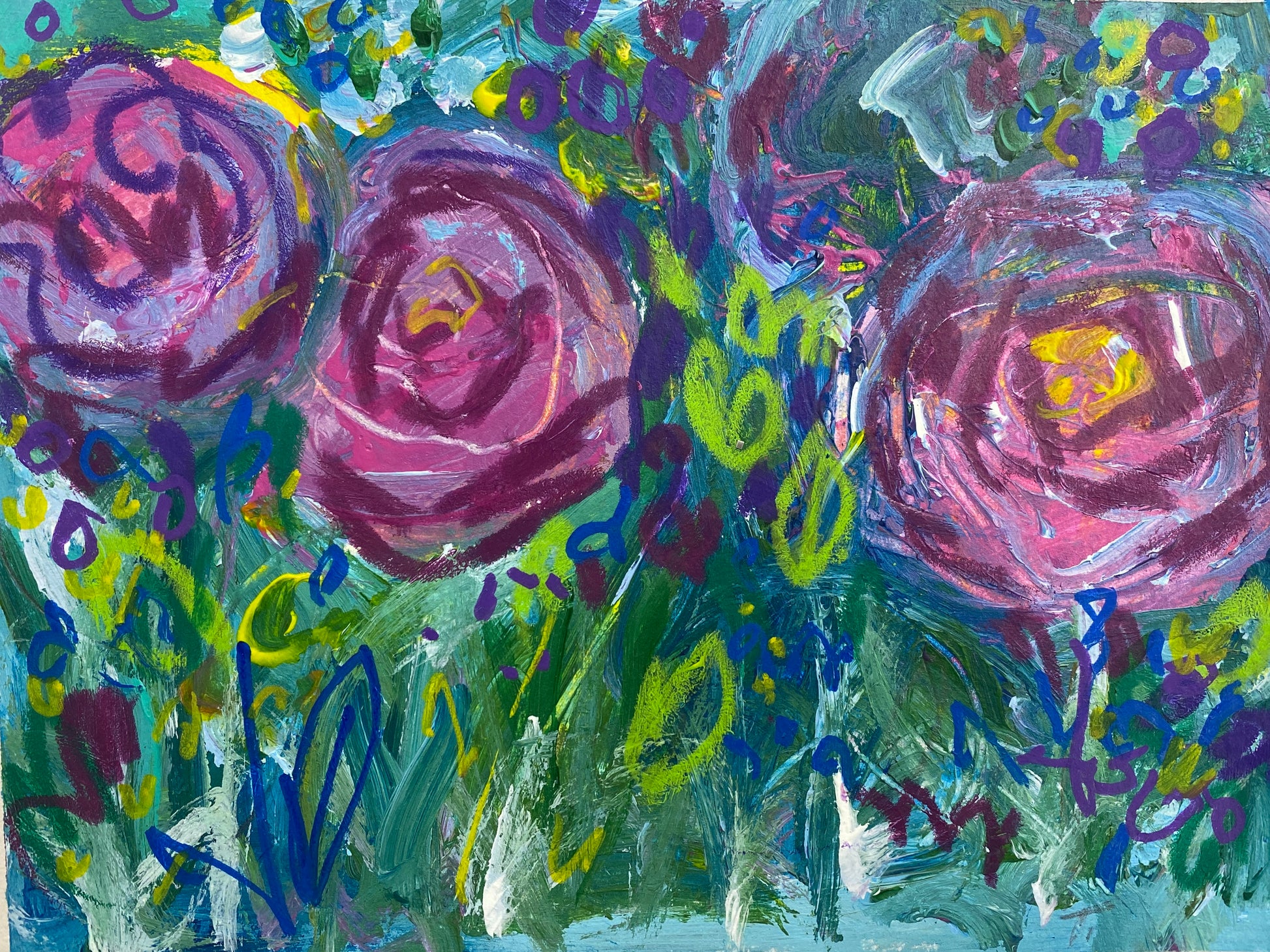 These are some examples of intuitive paintings; landscape, abstract and florals created by Tracy.