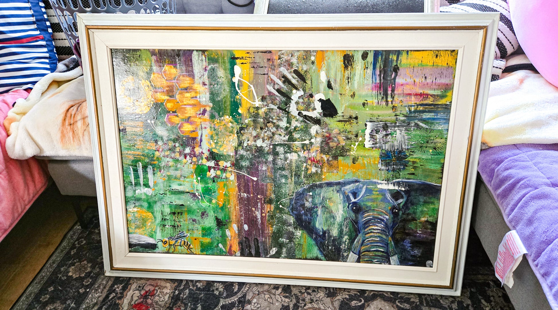 Elephant Guardian is a larger piece with an abstract, yet calming vibe. The dimensions are 36 x 24.