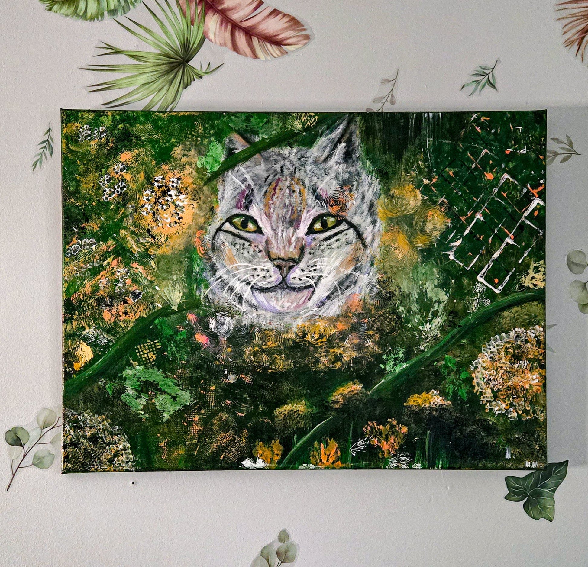 This kitty cat will protect your home with good vibes and a botanical look! Dimensions are 24 x 18.