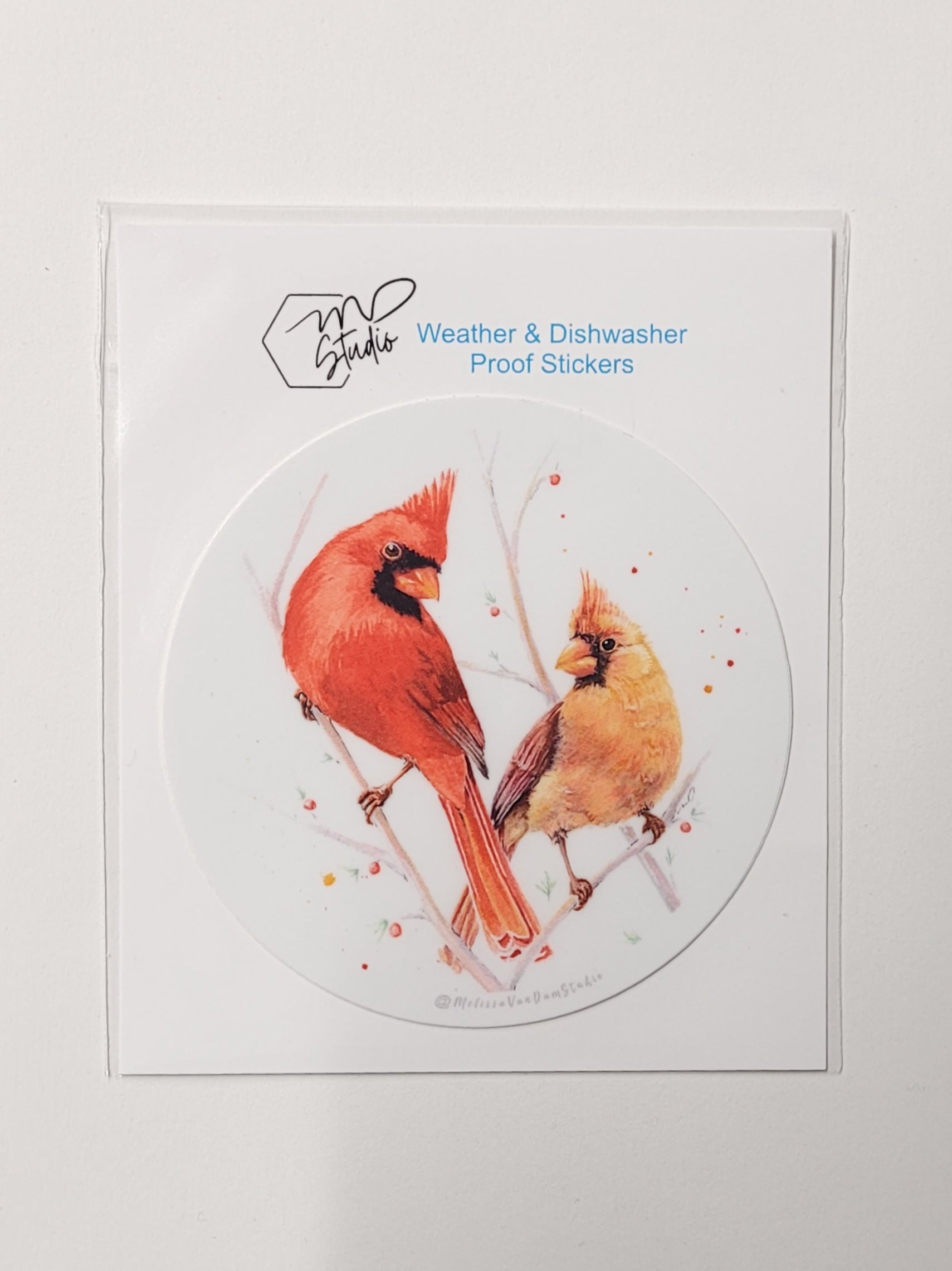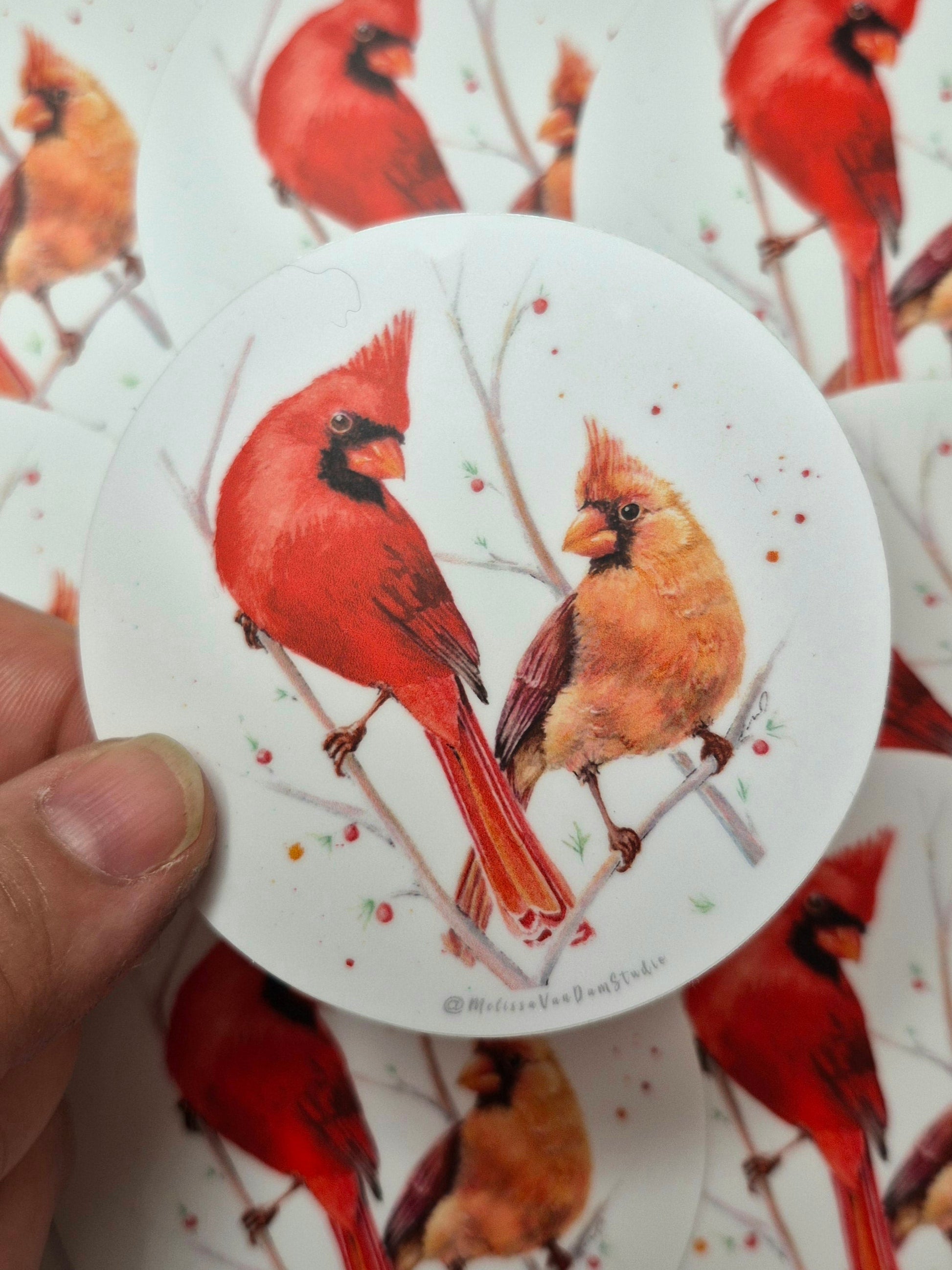 Dress up any space with this Cardinal pair sticker! Featuring a beautiful cardinal couple perched on branches, this card symbolizes love and companionship. Comes with envelope. Don't miss out on this perfect match!"